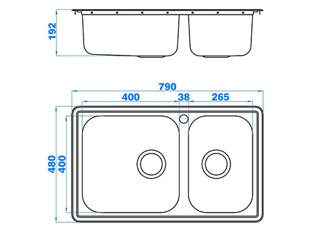 型號(hào):665款式:雙盆安裝方式:嵌入式總尺寸:790*480 mm大盆:400*400*192 mm小盆:265*400*192 mm