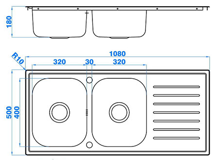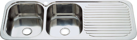型號(hào):151-H2款式:單瀝水板雙盆安裝方式:嵌入式總尺寸:1080*500 mm雙盆:320*400*180 mm