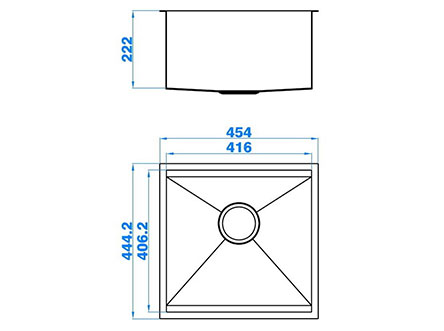 型號(hào):5160款式:單盆安裝方式:臺(tái)底式總尺寸:454*444 mm大盆:416*406*222 mm